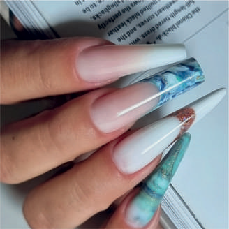 - tecnica full cover, forma quadrata con effetto marmorizzato